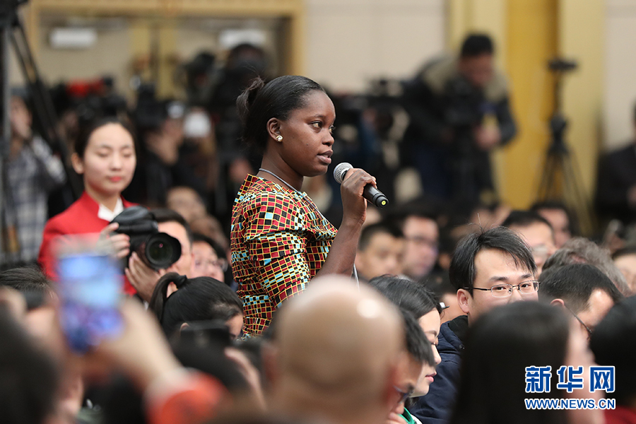 十二屆全國人大五次會議新聞中心于3月8日(星期三)10時在梅地亞中心多功能廳舉行記者會,邀請外交部部長王毅就“中國的外交政策和對外關(guān)系”的相關(guān)問題回答中外記者的提問。圖為坦桑尼亞標(biāo)準(zhǔn)報業(yè)集團記者提問。新華網(wǎng)/中國政府網(wǎng) 翟子赫 攝