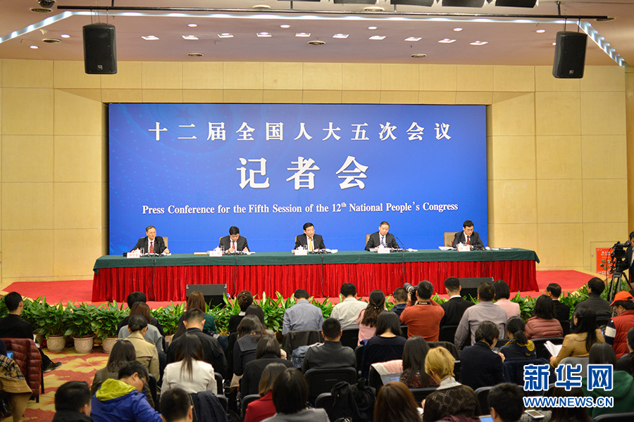 3月11日,十二屆全國人大五次會議新聞中心舉行記者會,邀請工業(yè)和信息化部部長苗圩、副部長辛國斌和總工程師、新聞發(fā)言人張峰就“推進實施‘中國制造2025’”的相關(guān)問題回答中外記者的提問。圖為記者會現(xiàn)場。新華網(wǎng)/中國政府網(wǎng) 孫韜 攝