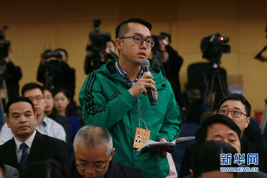 3月11日,十二屆全國(guó)人大五次會(huì)議新聞中心舉行記者會(huì),邀請(qǐng)工業(yè)和信息化部部長(zhǎng)苗圩、副部長(zhǎng)辛國(guó)斌和總工程師、新聞發(fā)言人張峰就“推進(jìn)實(shí)施‘中國(guó)制造2025’”的相關(guān)問(wèn)題回答中外記者的提問(wèn)。圖為經(jīng)濟(jì)日?qǐng)?bào)記者提問(wèn)。新華網(wǎng)/中國(guó)政府網(wǎng) 傅義洲 攝