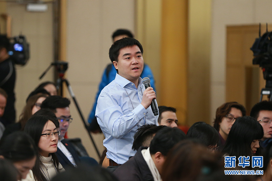3月11日,十二屆全國人大五次會議新聞中心舉行記者會,邀請工業和信息化部部長苗圩、副部長辛國斌和總工程師、新聞發言人張峰就“推進實施‘中國制造2025’”的相關問題回答中外記者的提問。圖為中國國際廣播電臺記者提問。新華網/中國政府網 傅義洲 攝