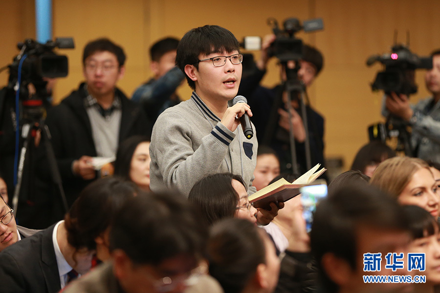 3月12日,十二屆全國人大五次會議新聞中心舉行記者會,邀請教育部部長陳寶生就“教育改革發展”的相關問題回答中外記者的提問。圖為光明日報記者提問。新華網/中國政府網 傅義洲 攝