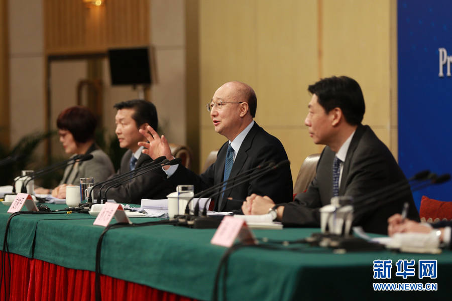 3月14日,十二屆全國人大五次會議新聞中心舉行記者會,邀請國家質檢總局局長支樹平、副局長兼國家認證認可監督管理委員會主任孫大偉、國家標準化管理委員會主任田世宏就“質量提升”的相關問題回答中外記者的提問。圖為支樹平回答記者提問。新華網/中國政府網 傅義洲 攝