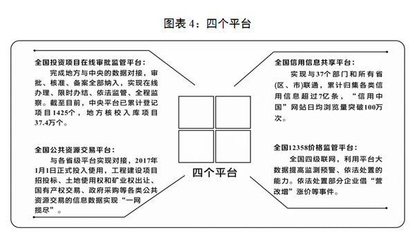 一是簡政放權放管結(jié)合優(yōu)化服務改革向縱深推進。在提前完成本屆政府減少行政審批事項三分之一目標的基礎上,去年又取消165項國務院部門及其指定地方實施的審批事項,清理規(guī)范192項審批中介服務事項、220項職業(yè)資格許可認定事項。第三次修訂政府核準的投資項目目錄。商事制度改革繼續(xù)深化。全面推行“雙隨機、一公開”,增強事中事后監(jiān)管的有效性,推進“互聯(lián)網(wǎng)+政務服務”。市場準入負面清單制度改革試點開局良好。“放管服”四大平臺建成運行。