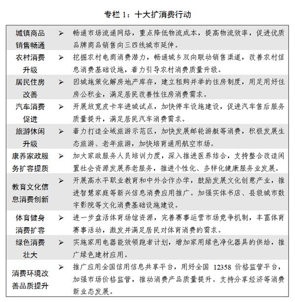 一是消費基礎作用進一步增強。促進消費帶動轉(zhuǎn)型升級的行動方案出臺,“十大擴消費行動”全面推進。促進綠色消費、實體零售創(chuàng)新轉(zhuǎn)型、交通物流融合發(fā)展的政策出臺實施。進一步擴大旅游文化體育健康養(yǎng)老教育培訓等領域消費的意見發(fā)布實施,服務消費蓬勃興起,汽車等實物消費擴大升級。激發(fā)重點群體活力帶動城鄉(xiāng)居民增收的實施意見出臺,居民消費能力持續(xù)提升。社會消費品零售總額增長10.4%。消費在經(jīng)濟增長中發(fā)揮主要拉動作用,貢獻率達到64.6%,消費和投資的比例關系進一步改善。