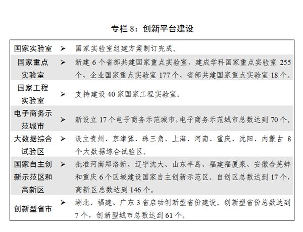 一是創(chuàng)新能力持續(xù)提升。由點及面、有序布局重大科技創(chuàng)新平臺建設,深入推進8個區(qū)域全面創(chuàng)新改革試驗。北京、上海建設科技創(chuàng)新中心邁出新步伐。河北·京南、浙江、寧波3個國家科技成果轉(zhuǎn)移轉(zhuǎn)化示范區(qū)啟動建設。首個國家高速列車技術創(chuàng)新中心建成。完全自主知識產(chǎn)權中國標準高速列車正式投入運營。建成世界最大單口徑射電望遠鏡(FAST)等一批重大科技基礎設施,在量子通信、航空航天等方面取得一批重大科技成果。國家科技重大專項深入實施,科技創(chuàng)新2030-重大項目遴選確定。大力推動企業(yè)技術創(chuàng)新,落實好研發(fā)費用加計扣除、股權激勵和技術入股所得稅優(yōu)惠、完善高新技術企業(yè)認定辦法等政策。