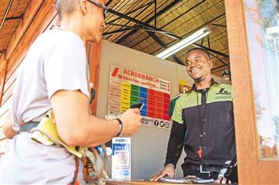在南非約翰內(nèi)斯堡,一名游客使用支付寶支付。新華社發(fā)