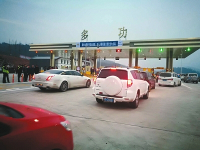 2017年12月31日下午5時許,在雅康高速多功收費站外,雖然高速尚未開通,二十余輛小轎車已排起了隊,等待駛入雅康高速。多功收費站位于雅安市天全縣和二郎山之間,主要是為蘆山、寶興方向的車輛設站,在雅康高速開通前,去瀘定必須翻越二郎山,如今高速開通,15分鐘便可穿越巍巍二郎山。下午6點,雅康高速雅安至瀘定段各收費站準時向社會車輛開放,標志著雅康高速雅安至瀘定段正式試通車。本次試通車的雅瀘段全長95公里,開通4個收費站:多功、天全、新溝、瀘定,ETC同步投入使用;開通天全服務區,可滿足如廁、臨時加油、停車等基本需求。