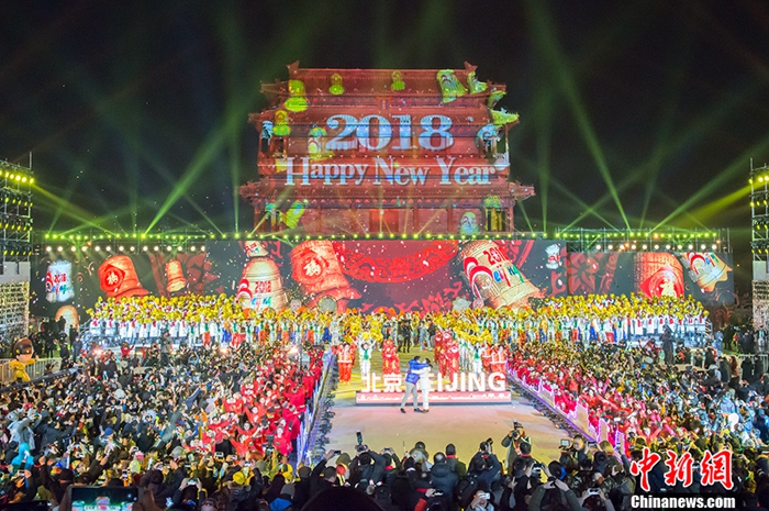 北京永定門(mén)上演2018新年倒計(jì)時(shí) 古老與現(xiàn)代交融