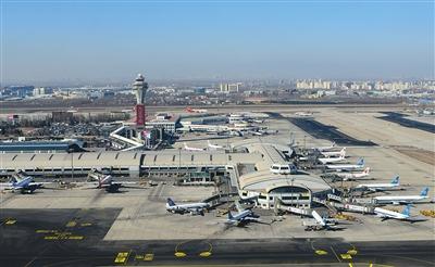 2月9日,首都機(jī)場(chǎng)T2的飛機(jī)。春運(yùn)期間,機(jī)場(chǎng)飛機(jī)流量增大。圖片來源:新京報(bào)