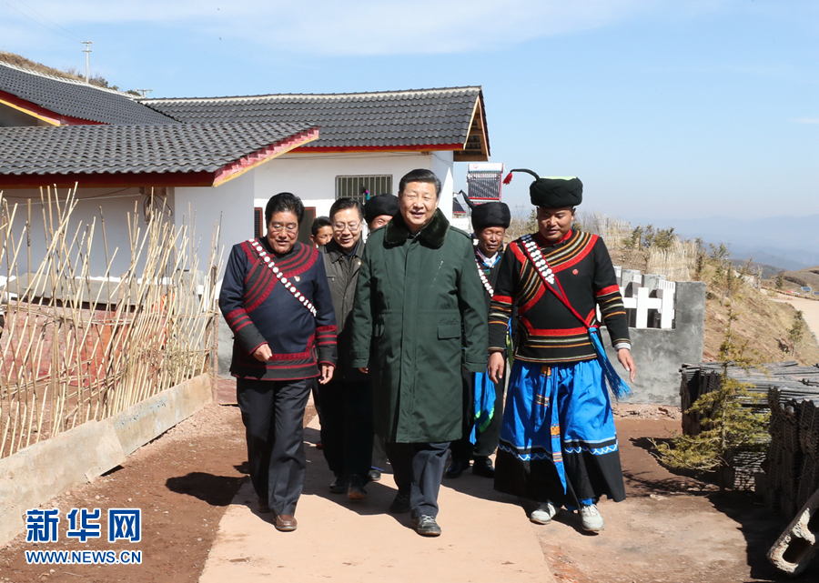 這是2月11日上午,習近平在涼山彝族自治州昭覺縣解放鄉火普村了解易地扶貧搬遷和彝家新寨建設情況。 新華社記者 鞠鵬 攝