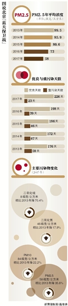 2013年9月,《北京2013-2017清潔空氣行動計劃》發(fā)布,北京正式向PM2.5宣戰(zhàn)。該計劃提出,到2017年,北京PM2.5年均濃度比2012年下降25%以上,措施力度空前。
