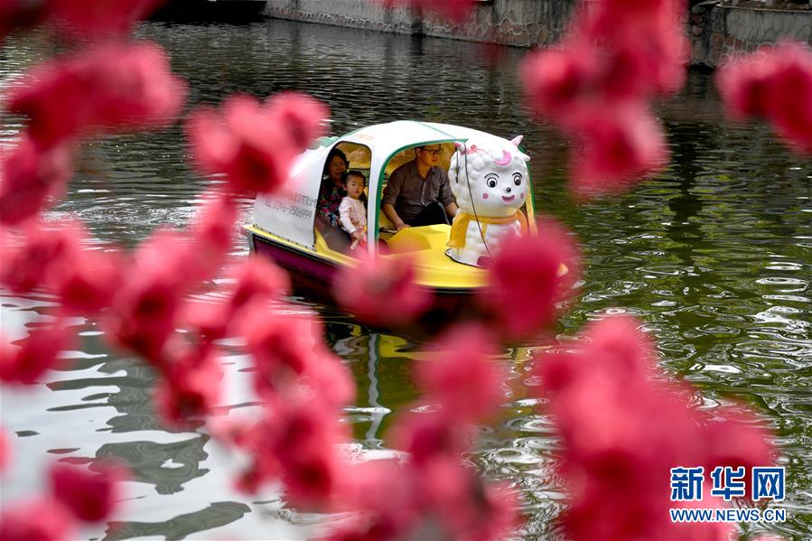 3月28日,游客在鄭州市人民公園泛舟。春天的鄭州氣象更新、萬物復蘇,在春意盎然的人民公園內,游人乘輕舟暢游賞花,享受美好春光。 新華社記者朱祥攝