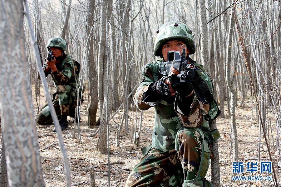 這是特戰(zhàn)隊員正在進行紅藍對抗科目訓練。新華網發(fā) 余文彬 攝