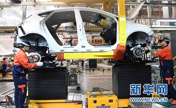 3月27日,工人們在浙江臨海的吉利汽車生產(chǎn)車間工作。新華社記者 殷博古 攝