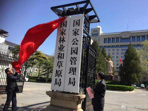 新華網(wǎng)北京4月10日電? 國(guó)家林業(yè)和草原局、國(guó)家公園管理局10日正式揭牌,由自然資源部管理,這對(duì)統(tǒng)籌山水林田湖草系統(tǒng)治理具有重要意義。(記者 侯雪靜 胡璐) ????(據(jù)新華社“新華視點(diǎn)”微博)