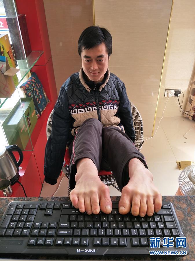 “從剛開始用一個(gè)一個(gè)腳指頭練習(xí)‘敲’鍵盤,到現(xiàn)在的十根腳趾都能用上了,證明只要努力了,就沒有做不到的事兒……”他在微信朋友圈里這樣說。