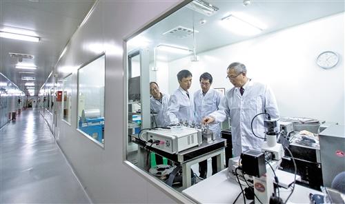 中國科學院院士羅俊教授(右)在華中科技大學引力實驗中心與科研人員交流實驗情況。新華社記者 熊琦攝