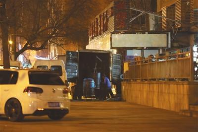 4月12日晚9時30分,延靜里中街的玉林烤鴨店門口,“京Q**880”如常停靠,裝上兩桶泔水后,駛離。記者 李明