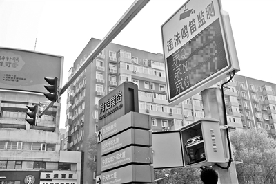 昨天下午,北青報(bào)記者來到黃莊路口西北角,周圍鳴笛聲不斷,嘈雜一片。很快,西北角路口處懸掛的LED顯示屏上,就出現(xiàn)了違法鳴笛車輛的車牌號(hào)信息。