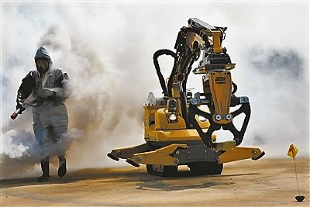 他是在真毒真防演練中,利用機器人等高科技裝備對突發(fā)事故進行應(yīng)急處置的火箭軍防化兵