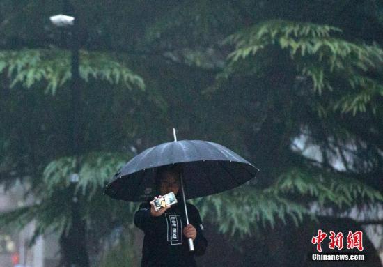 資料圖:市民在雨中自拍。中新社記者 劉關(guān)關(guān) 攝