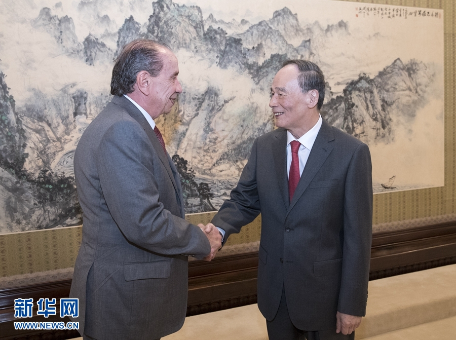 5月14日,國家副主席王岐山在北京中南海會見巴西外長努內斯。新華社記者 王曄 攝