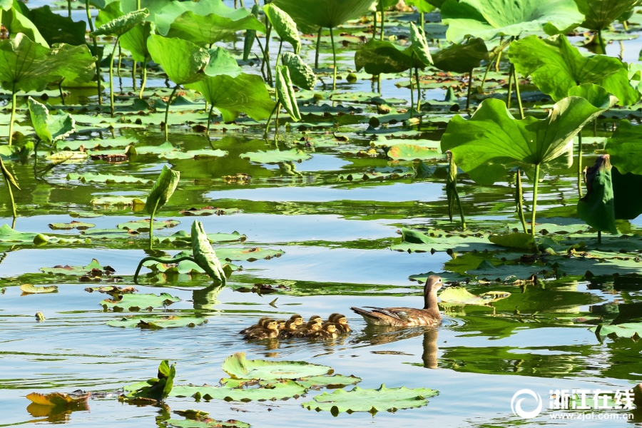 5月15日,西湖斷橋荷塘出現(xiàn)了今年第4窩小鴛鴦,此次共10只。與西湖第1窩時(shí)的獨(dú)苗相比,此窩可算是一個(gè)大家庭, 這讓鴛鴦媽媽忙不過來了。(浙江在線拍友 里爾 攝)