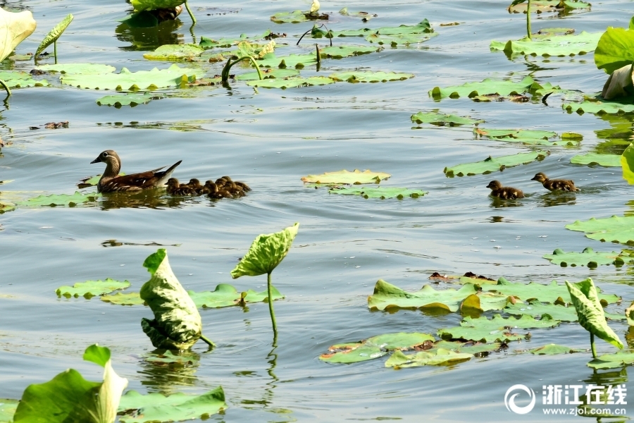 5月15日,西湖斷橋荷塘出現(xiàn)了今年第4窩小鴛鴦,此次共10只。與西湖第1窩時的獨苗相比,此窩可算是一個大家庭, 這讓鴛鴦媽媽忙不過來了。(浙江在線拍友 里爾 攝)