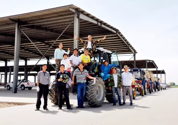 農科畢業生姚珊(三排左一)在寧夏千葉青農業科技發展公司生產基地與同事合影
