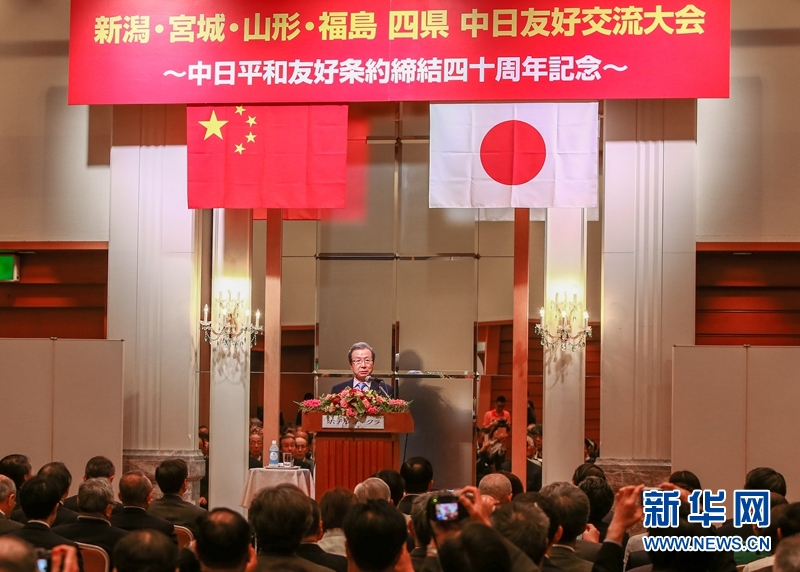 5月22日,日本新潟,中國駐日本大使程永華在日本4縣中日友好交流大會上發言。新華網發 馬曹冉 攝