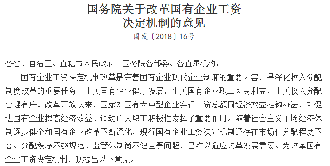 25日,國務院正式發布《關于改革國有企業工資決定機制的意見》,一份影響著近4千萬國企員工工資的重磅文件正式面世!