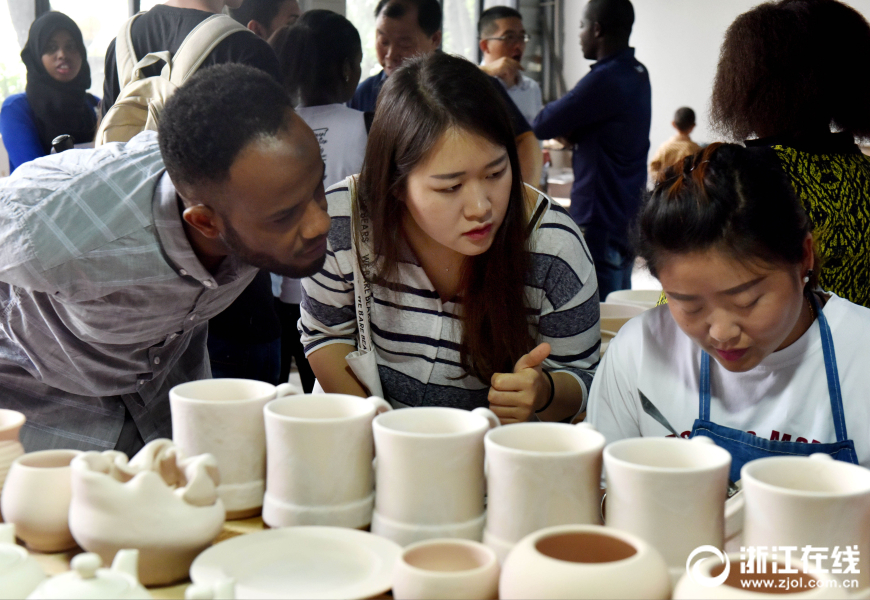 2018年6月3日,來自30多個國家的70多名留學生,在武義漢坊婺窯認真學習修坯、上釉等環節。