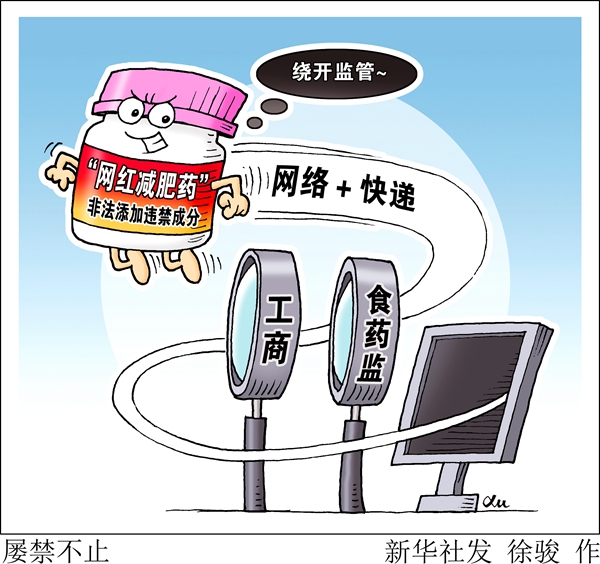 針對當前許多“網(wǎng)紅減肥藥”肆意添加西布曲明等違禁成分的現(xiàn)象,業(yè)內(nèi)人士認為,這既要警方嚴厲打擊,也要市場、藥品監(jiān)管部門變革傳統(tǒng)的監(jiān)管方式,加快構(gòu)建網(wǎng)上的監(jiān)管體系。另外,有關(guān)電商企業(yè)應(yīng)承擔應(yīng)有的社會責任,不讓國家禁止藥物和假冒偽劣產(chǎn)品在平臺上肆意流通,如產(chǎn)生嚴重社會后果,也應(yīng)被追責。