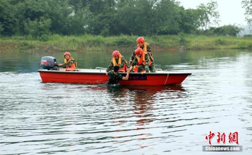 資料圖:圖為湖北赤壁消防大隊(duì)舉行防汛抗洪應(yīng)急救援拉動(dòng)演練。徐聰聰 攝