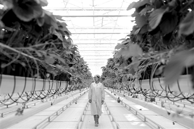創新發展不僅停留在工業層面,2016年9月,海升集團投資建設的5萬平方米現代智能玻璃溫室草莓栽培項目“草莓星球”正式投入使用。項目采用智能升降溫管理系統、精準水肥循環系統和基質吊架立體栽培等來自荷蘭的工業化現代農業生產技術,實現了溫、光、氣、水、肥的智能精準控制,草莓實現了一年9個月產果,產量較以往提升了3倍以上。