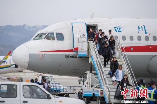 圖為旅客抵達(dá)拉薩貢嘎國(guó)際機(jī)場(chǎng)。何蓬磊 攝