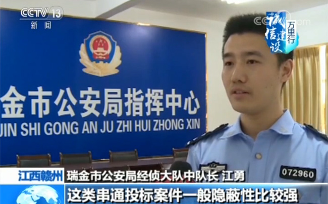 瑞金市公安局經(jīng)偵大隊(duì)中隊(duì)長(zhǎng) 江勇:這類串通投標(biāo)案件一般隱蔽性比較強(qiáng),對(duì)于這個(gè)案子來說,涉案人員眾多。而且他們都是利益獲得方容易形成攻守同盟,對(duì)我們公安機(jī)關(guān)取證有很大的困難。通過調(diào)取大量的銀行流水和該項(xiàng)目的相關(guān)投標(biāo)招標(biāo)資料。再通過外圍走訪,確定鐘某等人涉嫌串通投標(biāo)。