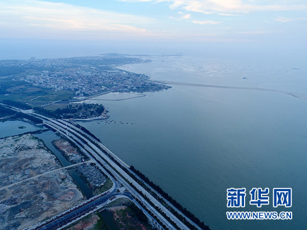 這是8月4日拍攝的福建向金門供水工程輸水管道出??跁x江圍頭灣(無人機拍攝)。新華社記者 姜克紅 攝