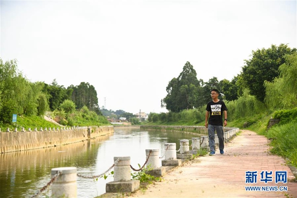 廣東省鶴山市“民間河長(zhǎng)”趙德光在桃源河畔巡河(7月12日攝)。新華社記者 鄧華 攝