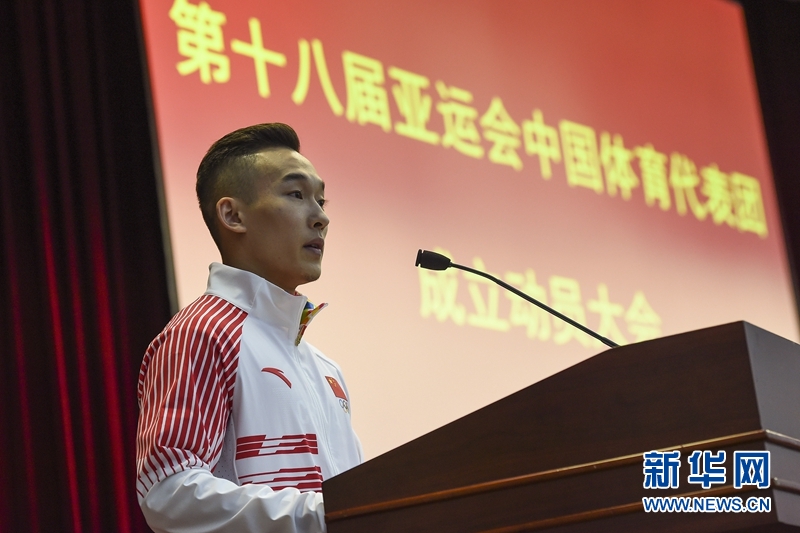 2017年體操世錦賽男子全能冠軍肖若騰作為運動員代表發(fā)言,他說:“四年一屆的亞運會,是亞洲最高競技水平的盛會,也是2020年東京奧運會的前哨戰(zhàn)。對于運動員來說,也是一次難得的檢驗訓練成果和競技實力的寶貴機會。在雅加達亞運會的賽場上,(我們)將圓滿完成運動成績和精神文明雙豐收的參賽任務。”