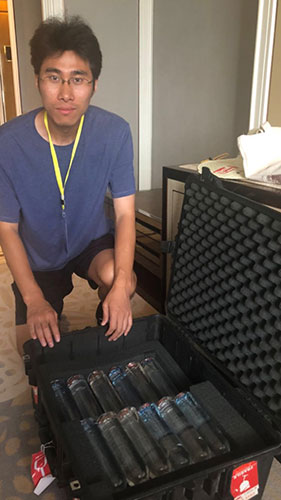 中央人民廣播電臺記者陳兆國和他們采集的長江水。
