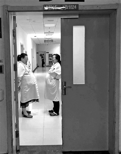距離預產期只有十天的準媽媽醫生姚芳蘭和李曉青,