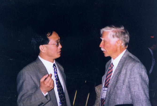 1999年,李勇杰與功能神經外科先驅、瑞典醫生 LV Laitinen交流。