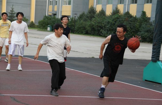 閑暇時光,李勇杰(右)喜歡打籃球。