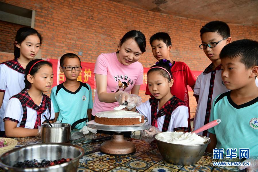 志愿者教孩子們學習烘焙