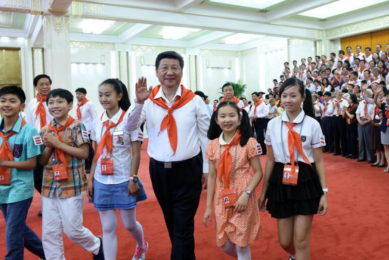2015年6月1日,習(xí)近平在北京人民大會堂親切會見中國少年先鋒隊(duì)第七次全國代表大會全體代表。新華社記者王曄攝