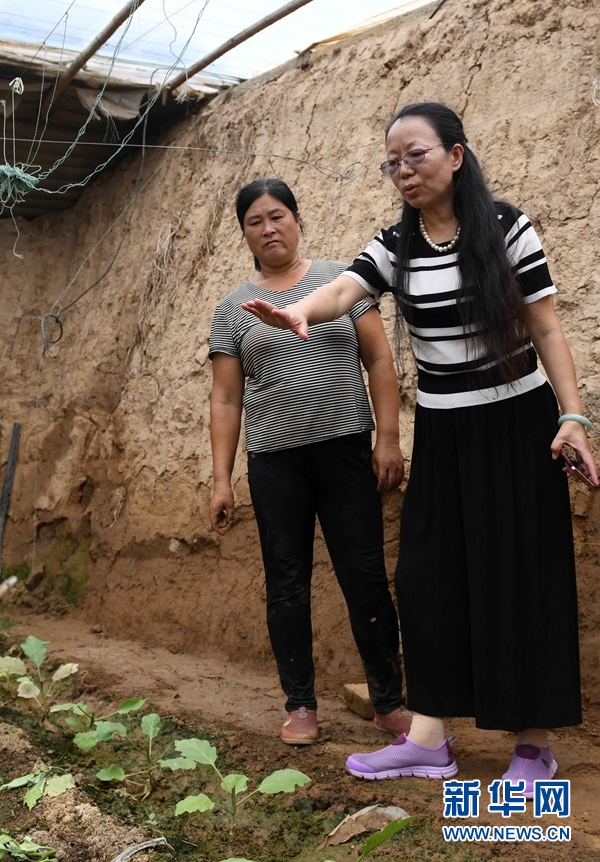 8月30日,中國農業大學教授高紅麗(右)在紀臺鎮前老莊村指導種植戶趙秀蓮做好田間管理。 新華社記者 朱崢 攝