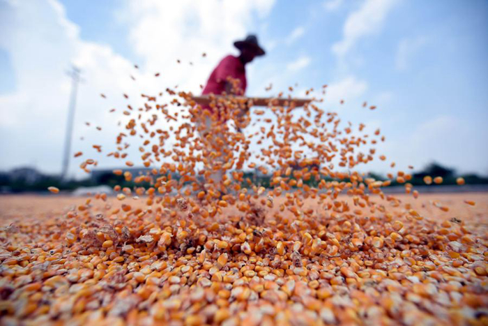 8月30日,山東省臨沂市郯城縣馬頭鎮(zhèn)農民在晾曬玉米。新華社發(fā)(房德華 攝)