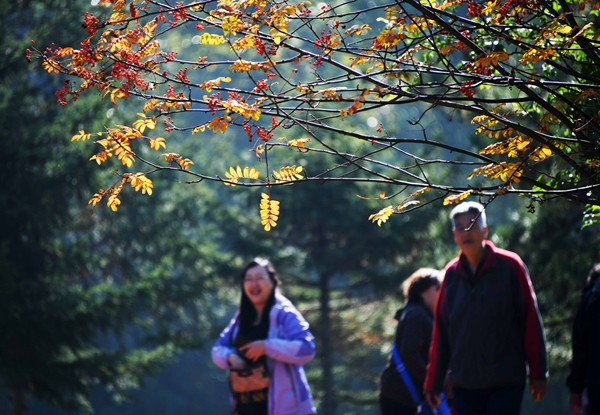 10月3日,在哈爾濱湘江公園,市民在游玩。當日是國慶黃金周的第三天,黑龍江哈爾濱市許多市民來到戶外“約會”大自然。新華社記者王建威攝