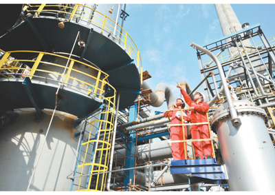 不斷追求綠色化,將排放濃度降至最低,企業這樣的環境行為理應得到認可和鼓勵。圖為中國石化西南油氣分公司元壩凈化廠工作人員在檢查排放治理設備。